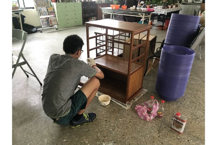 為了裝種子我們開始加強玻璃瓶回收,為了置放種子,路邊人家不要的廚櫃都是我們的寶貝,公園鋸下來的樹枝、樹幹都成了我們的素材,「種子學堂」正式誕生了。卻也在無心插柳的情況下,國宅社區種子學堂誕生了......